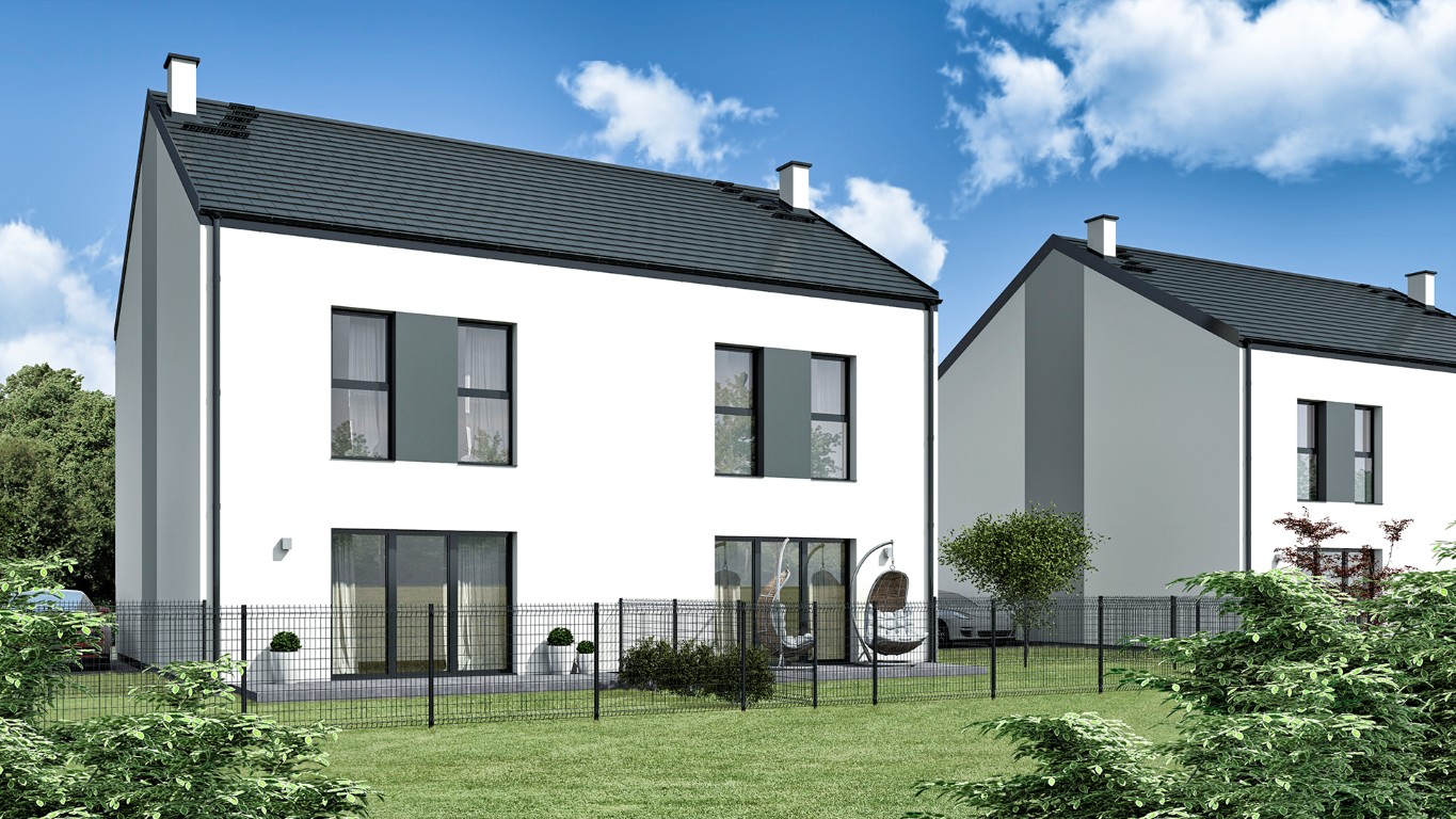 Wnętrza zostały zaprojektowane z myślą o wygodzie: duży salon z przesuwnym oknem, przestronna kuchnia z możliwością wydzielenia, a także użytkowy strych z posadzką, oknami i przygotowaną instalacją. Do tego dwa miejsca postojowe w cenie, ogrzewanie podłogowe i możliwość stworzenia wymarzonego salonu z kominkiem.